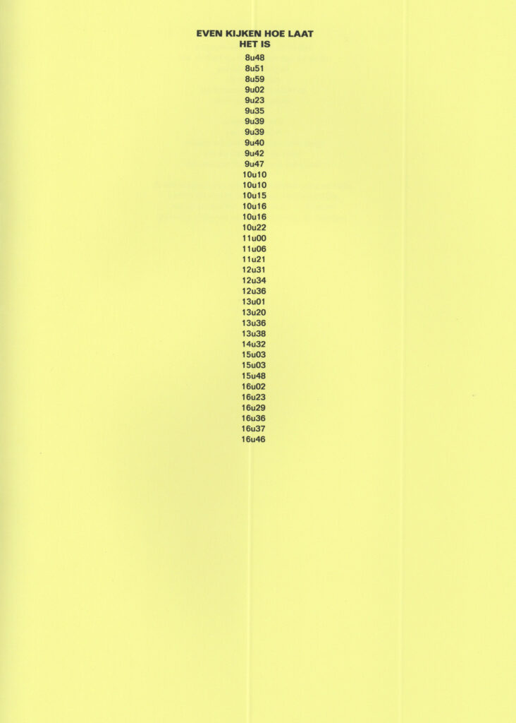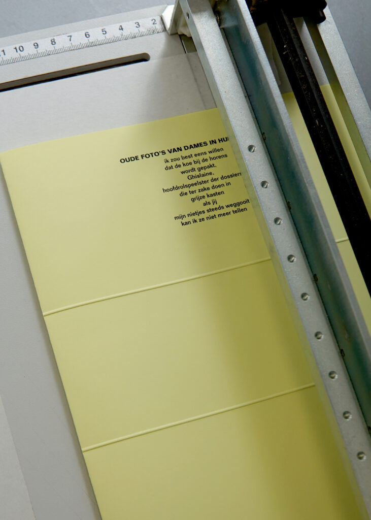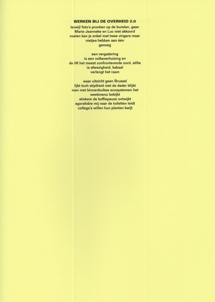 Hechtmappen bieden geen soelaas is what remained after a vacation job that consisted mostly of removing staples from outdated documents. These weeks were the source of fascinations for awkward silences, conversations in elevators, the theft of fluorescent pens and an exploded fan.